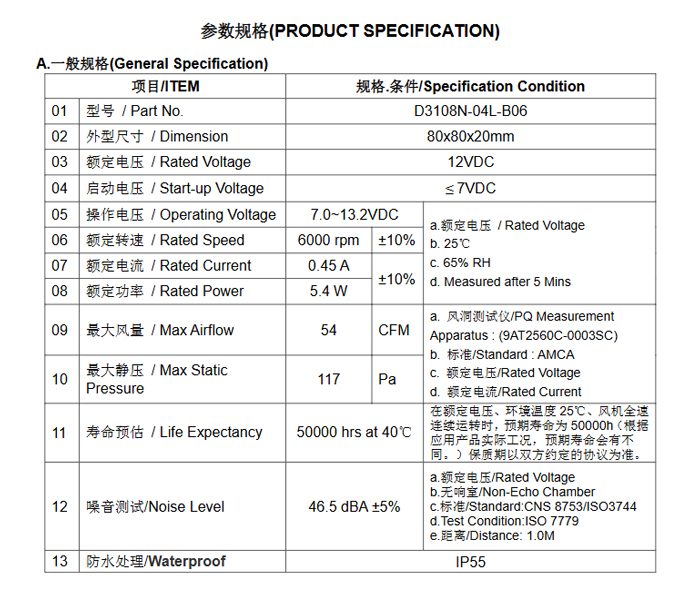 企业首页    风机风扇    DC 风扇    D3108N-04L-B06【8020风扇】12VDC 0.45A 6000RPM 直流风扇